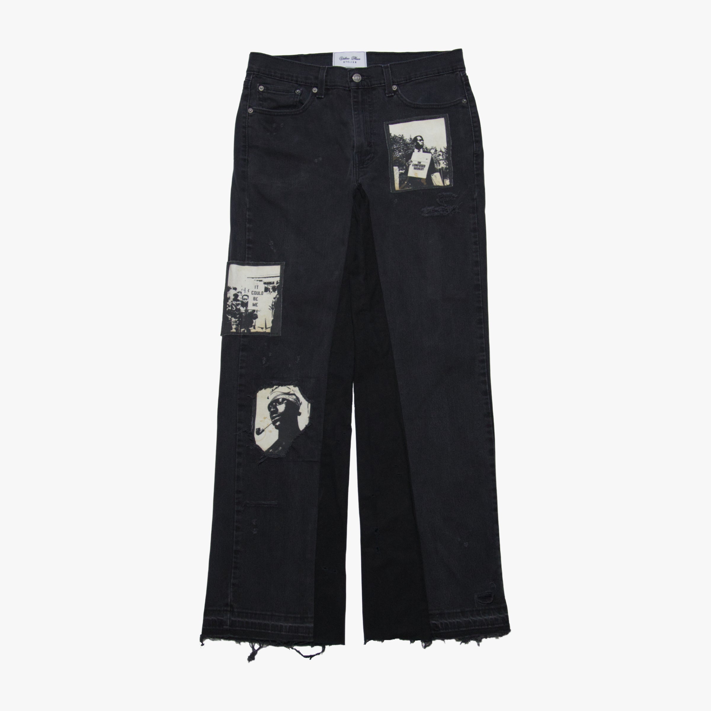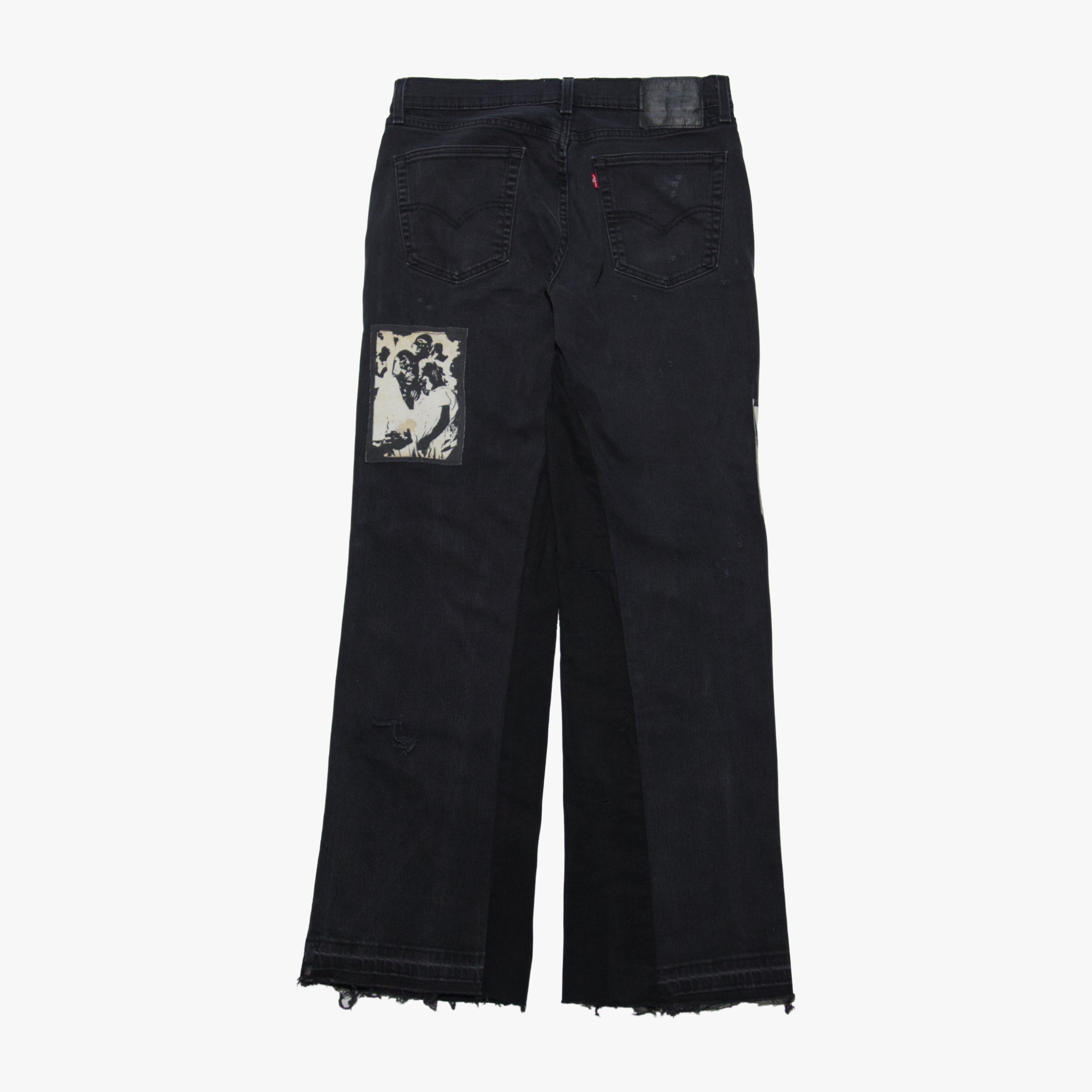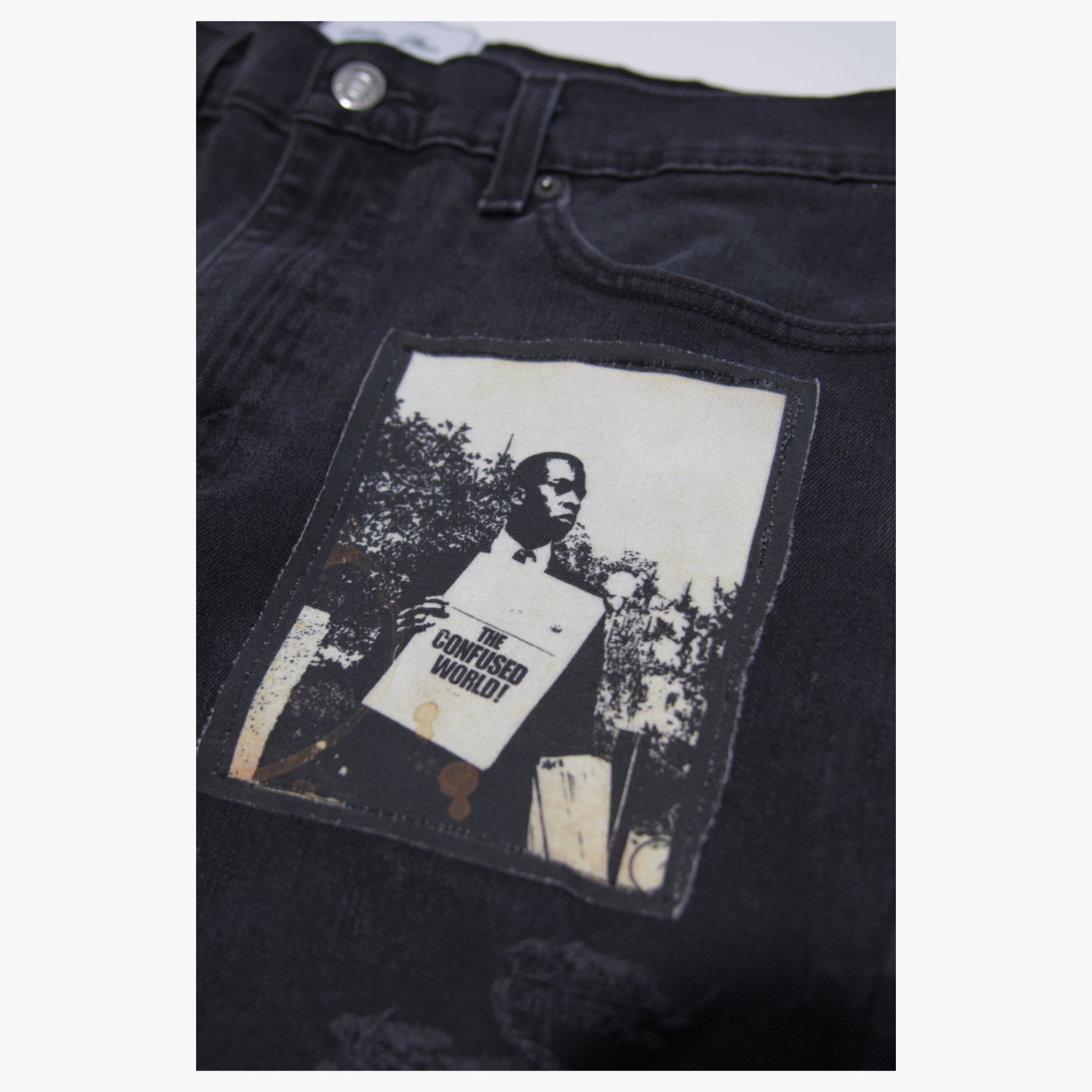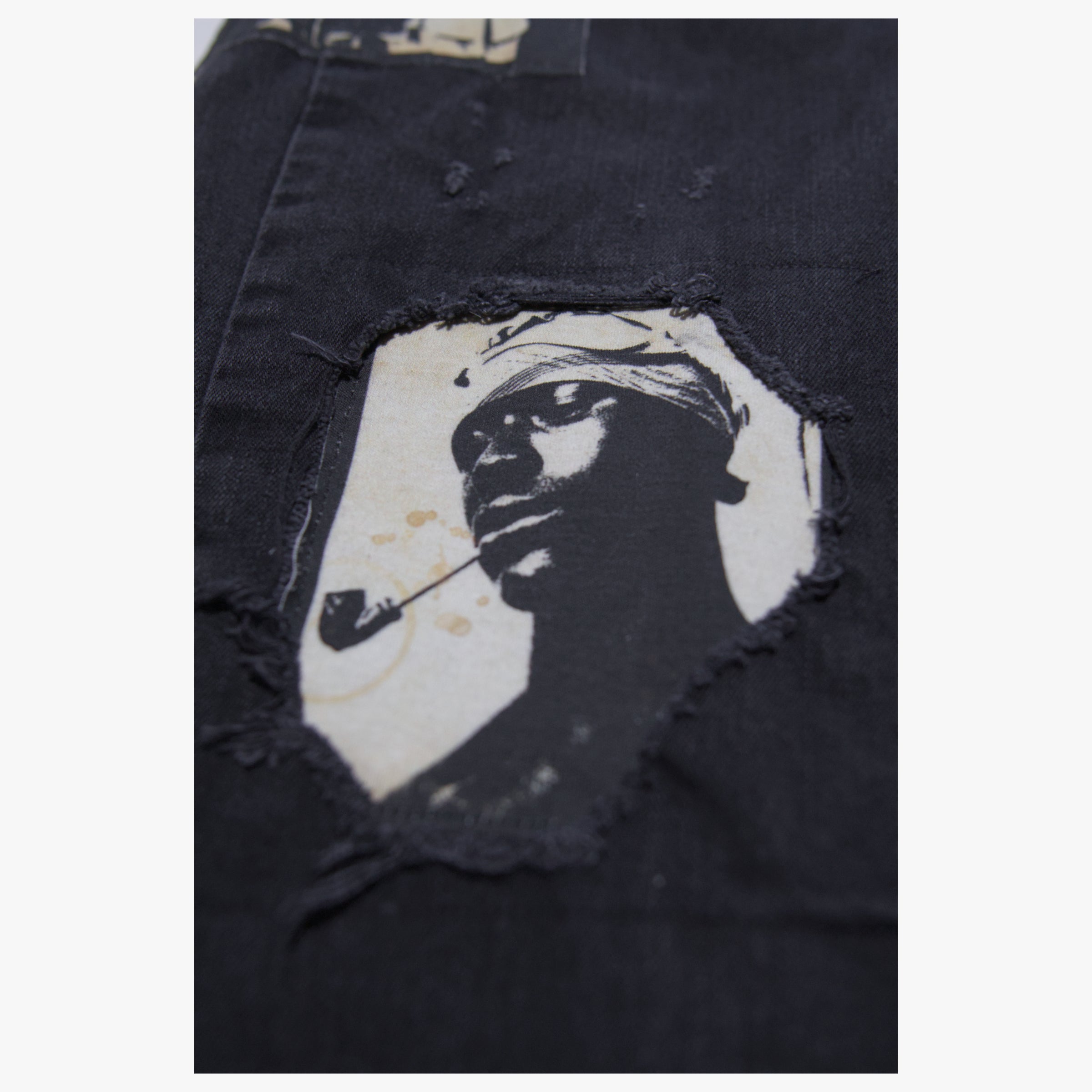 - Hand Distressed with sewn on patchwork.