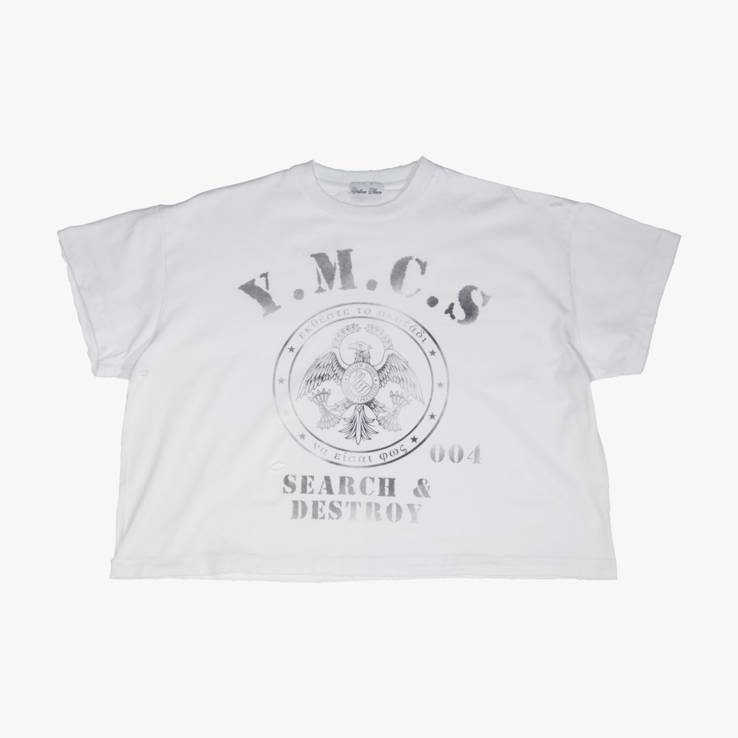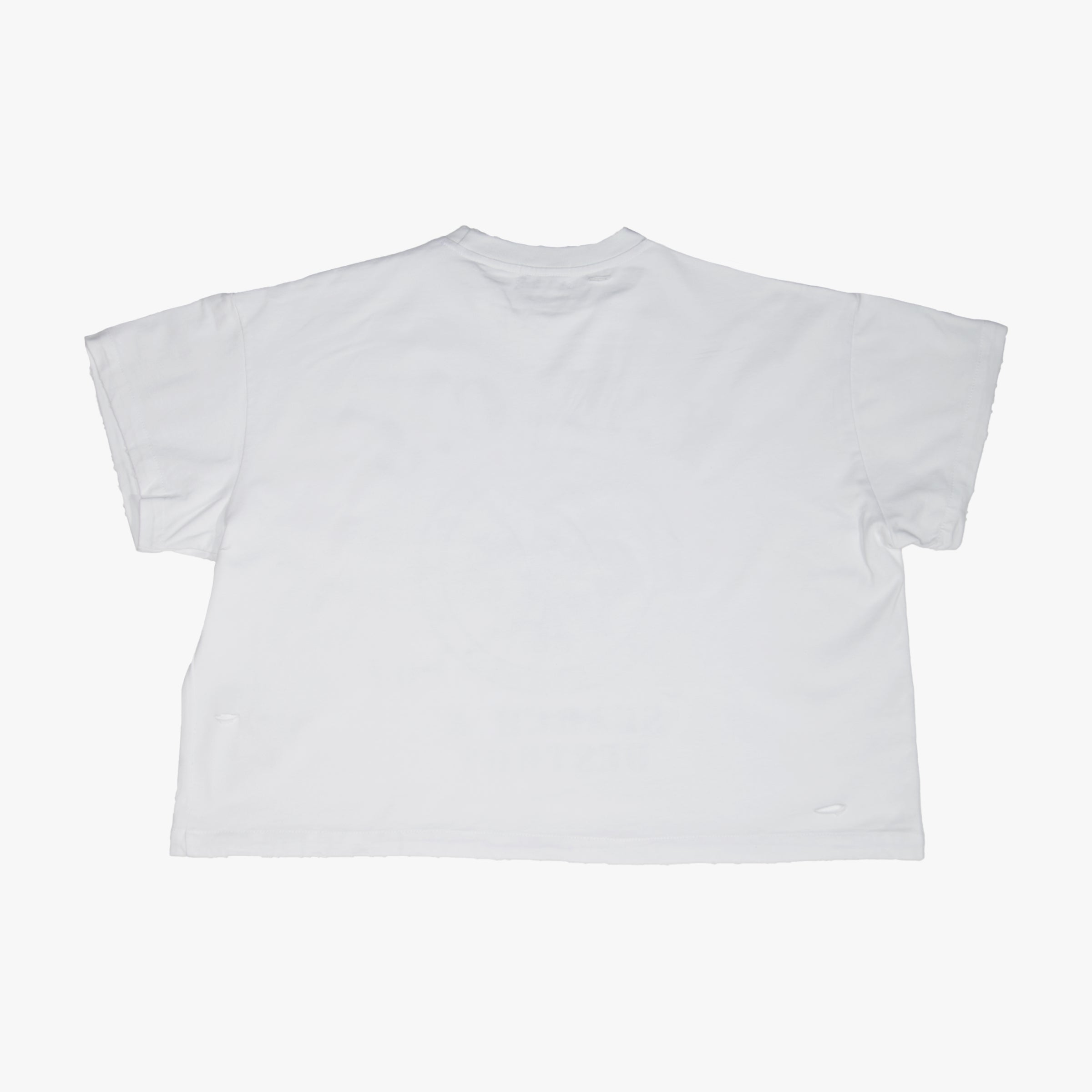 SHORT-SLEEVE DISTRESSED T-SHIRT IN LIGHT WEIGHT VINTAGE TEXTURE COTTON JERSEY. BOXY FIT. RIB KNIT NECKLINE. SINGLE STITCH HEM AT WAIST AND CUFFS. THESE PRODUCTS ARE DISTRESSED IN HOUSE AND WILL UNIQUELY VARY.